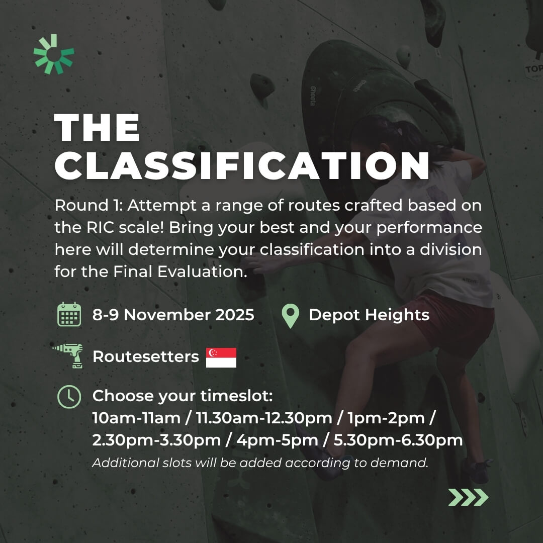 Attempt an array of routes meticulously crafted based on the Risk x Intensity x Complexity (RIC) scale. Your performance here will determine your classification into one of the five divisions for the final evaluation.